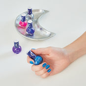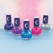 Color choices that are out of this world are packed in the Celestial Hexagon 5-pack nail polish set. Kids will love the assortment of night sky shimmer colors including pink, purple, blues, and silver gray. This set uses an unscented, water-based nail polish formula. Each 5ml bottle has a decorative top featuring the moon and stars. It comes packed in a hexagon gift box.