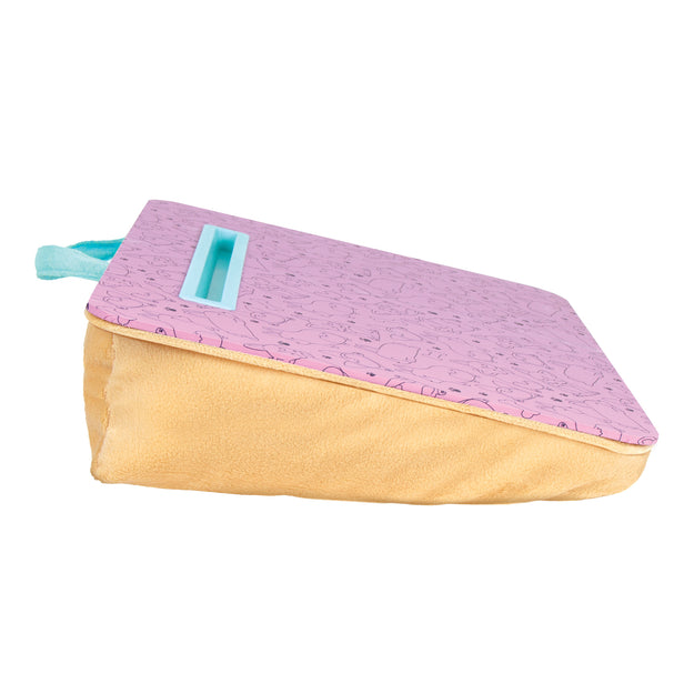 Work in comfort and style. Use this lap desk for reading, homework, manicures, and watching videos. The blue media slot at the top can hold tablets, smart phones or writing implements (tablet, phone, writing implements not included).