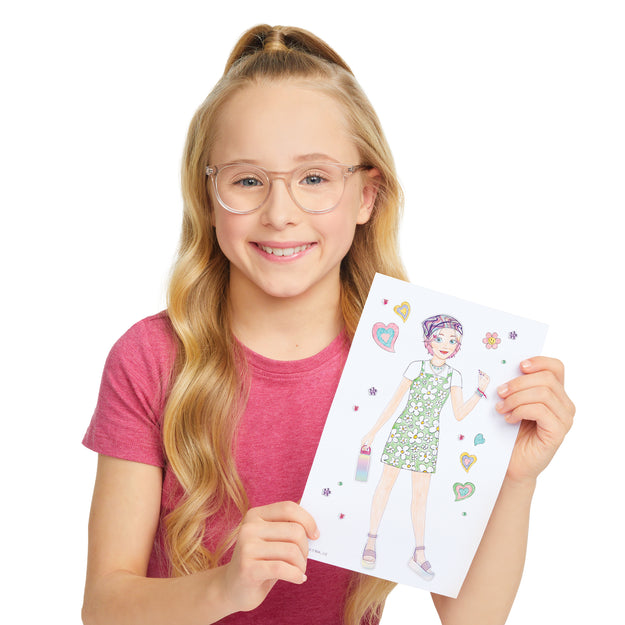 Attention budding fashion designers! This light weight, portable light-up drawing pad makes learning drawing skills, blending colors, matching patterns, and creating looks easier than ever. The light board includes an adjustable LED light for easy tracing. Simply tap until the desired brightness. Take on the go for fun anywhere! Includes a tracing tablet, micro-USB/5V charging cord, 5 pencil crayons, 1 graphite pencil, 1 sticker sheet, 1 gem sticker sheet, 20 model pages, 4 tracing pages, 1 roll of washi tape, 1 pencil sharpener, and 1 eraser. Simple instructions guide tweens through the creative process. Display stylish designs with the included washi tape once finished. The perfect gift for fashionista tweens wanting to practice their fashion design skills. USB charging block is not included.