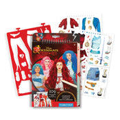 This Descendants 4-themed sketchbook is perfect for the budding fashion designer! Get creative using the chic stickers, stencils, and model pages. Use the 11 pages of inspiration and drawing techniques as a guide and let the designing begin! Included in the sketch book are some detailed ins and outs of the newest fan faves from Auradon and beyond.