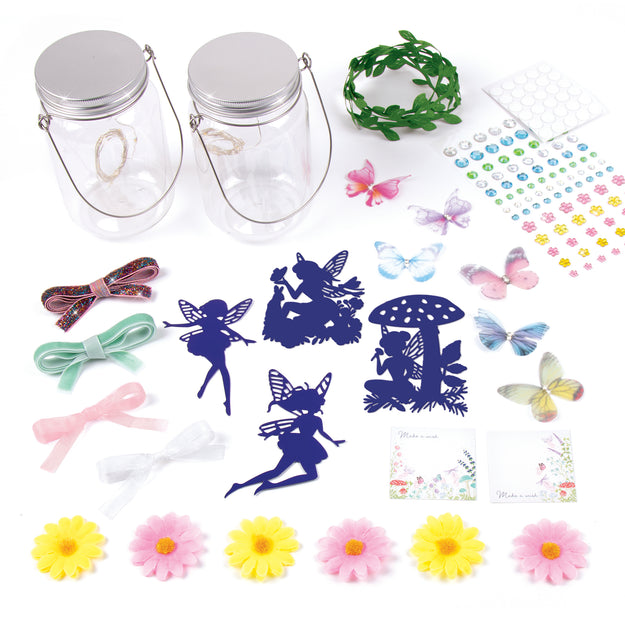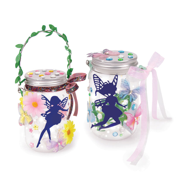 This DIY kit has everything needed to bring fairy fun to life! Assemble and admire as these fairy jars light up a room. Place a wish inside the jar and start making dreams come true. A perfect activity and precious addition to any space. Tweens will enjoy customizing their fairy jars and relaxing to their warm glow. The perfect DIY activity for creative tweens, with a rewarding result that feels like fairy magic! Simple instructions guide tweens as they assemble the fairy silhouette cards, fabric butterflies, faux flowers, ribbons, and adhesive gems in the light jar. A great gift idea for any occasion!