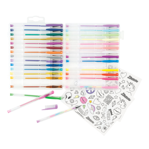 30 Gel Pen Set with Color Your Own Sticker Sheets