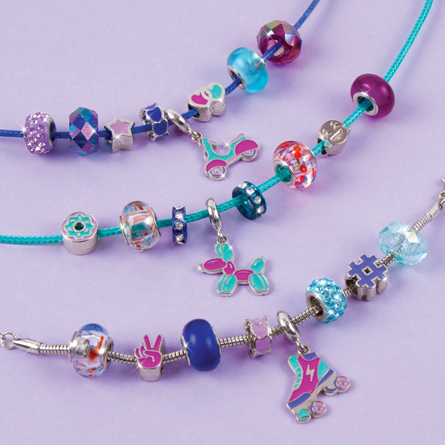 Learn how to make three beautiful metallic charm bracelets glimmering with sparkly faux crystals. This simple-to-use set keep’s kids entertained while engaging their creative side.