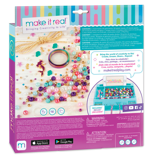 Calling future jewelry-makers everywhere! Create your own necklace, ring and bracelets with this locket set. Work with materials to create a pendant necklace and two unique bracelets mermaid themed – then mix and match to express your creativity even more.