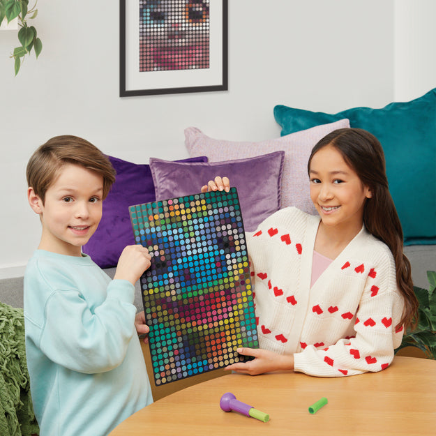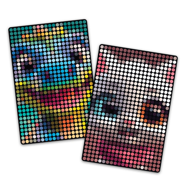 Enjoy the satisfying delight of creating your own dot art posters! Check the stamper for the number on the paper dot, then find the matching number on the poster. Align the circles and stamp! Continue to reveal two colorful dot art posters to hang up and enjoy. Each set contains everything needed to reveal two artworks featuring a cool cat and smiley dino, including a stamper, 4 dot cartridges, containing 1200 dots (300 per cartridge). Experience more satisfaction with every stamp and admire the rewarding result. Stamp To Reveal™ Satisfying Dot Art makes a great gift for trendy tweens, and anyone who loves a satisfying project whether for a birthday, holiday, or just because.