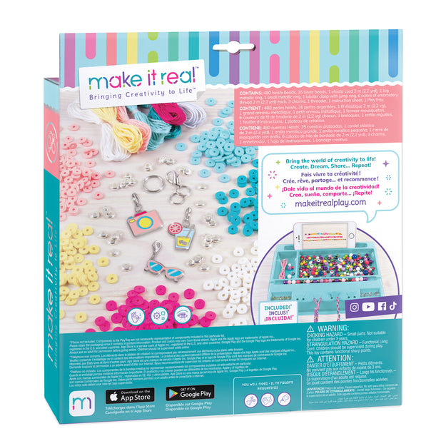 Learn how to create five heishi bead charm bracelets with this 528-piece jewelry kit complete with a sturdy PlayTray workstation.