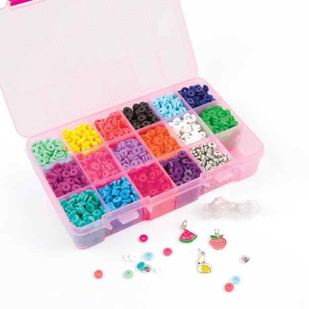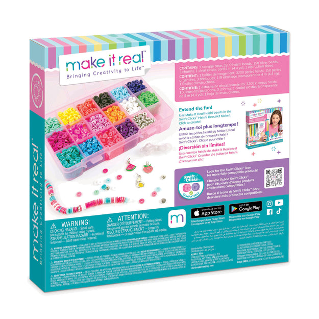 Heishi beads are one of the trendiest beads in bracelet making. No wonder they need more variety! This set introduces a brand-new collection with patterned beads, more metallics and fun new charms! This set is sure to delight any avid bracelet maker. The convenient storage case makes storage easy and on-the-go creativity a breeze. All the included beads in this set are compatible with the innovative Swift Clicks™ Heishi Bracelet Maker. This complete set makes a great gift idea for crafty kids, whether for a birthday bash, holiday, or just because. Encourage self-expression and creativity in young designers, all while helping to develop their fine-motor, visual, and tactile-sensory skills! Perfect for ages 8+.