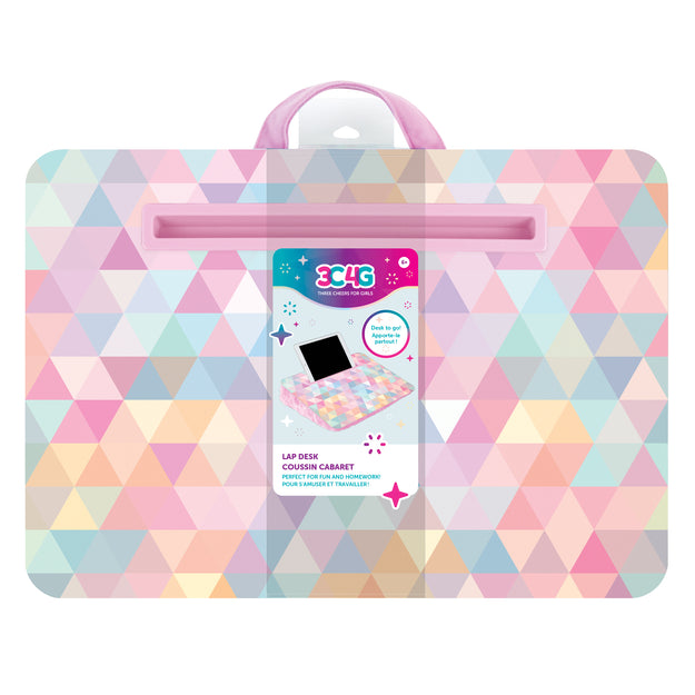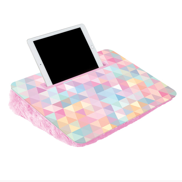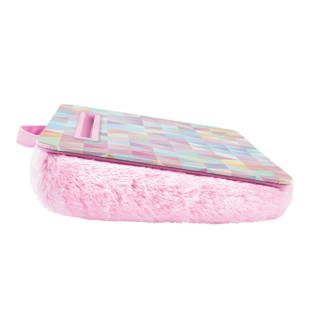 Printed wood lap desks with extra thick cushions and soft faux fur for added comfort.