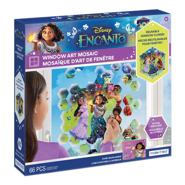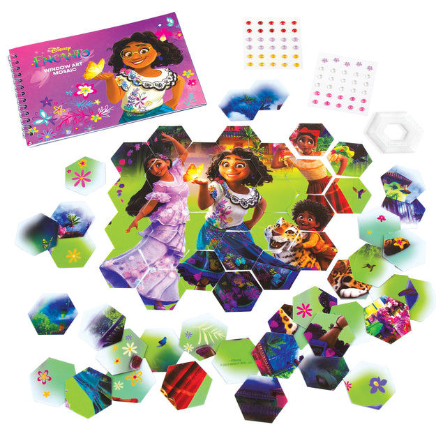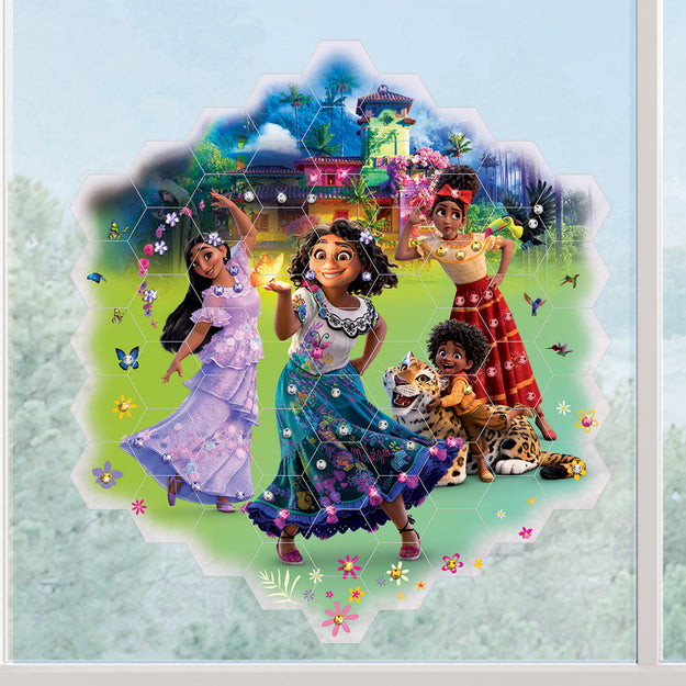 The fun of a puzzle and the result of a beautiful window decal! Start in the center of the puzzle, then challenge yourself to align the hexagons to create a fun Disney Encanto mosaic! Each kit contains: precut vinyl cling pieces on printed paper backing, hexagon removal tool to make easy transitions when moving the location of a piece or pieces, a story book with pages to store the window clings, and simple instructions. When finished, admire as the sunshine illuminates the window art mosaic and brings a pop of color to the space. The window clings can also be place on windows mirrors, flat surface shower doors, and more!